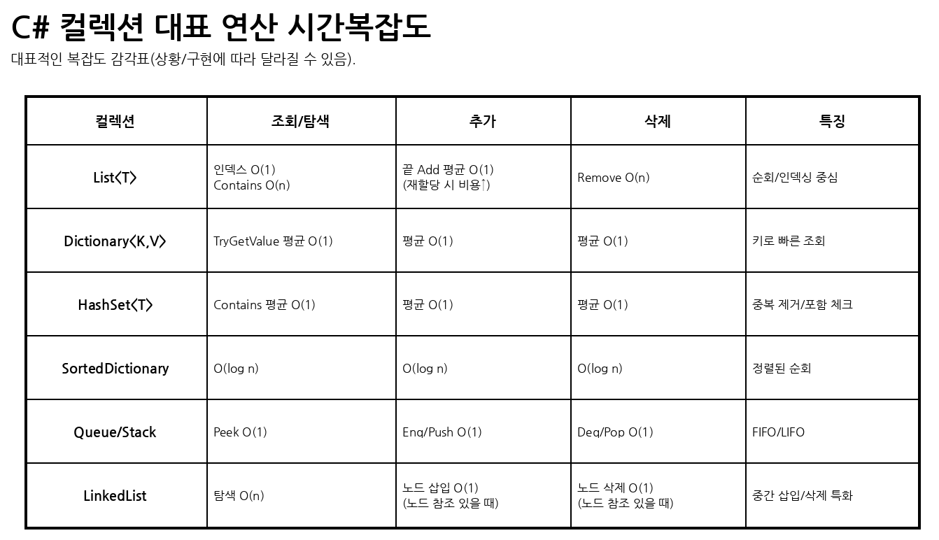 5) C# 컬렉션과 시간복잡도(선택 기준)